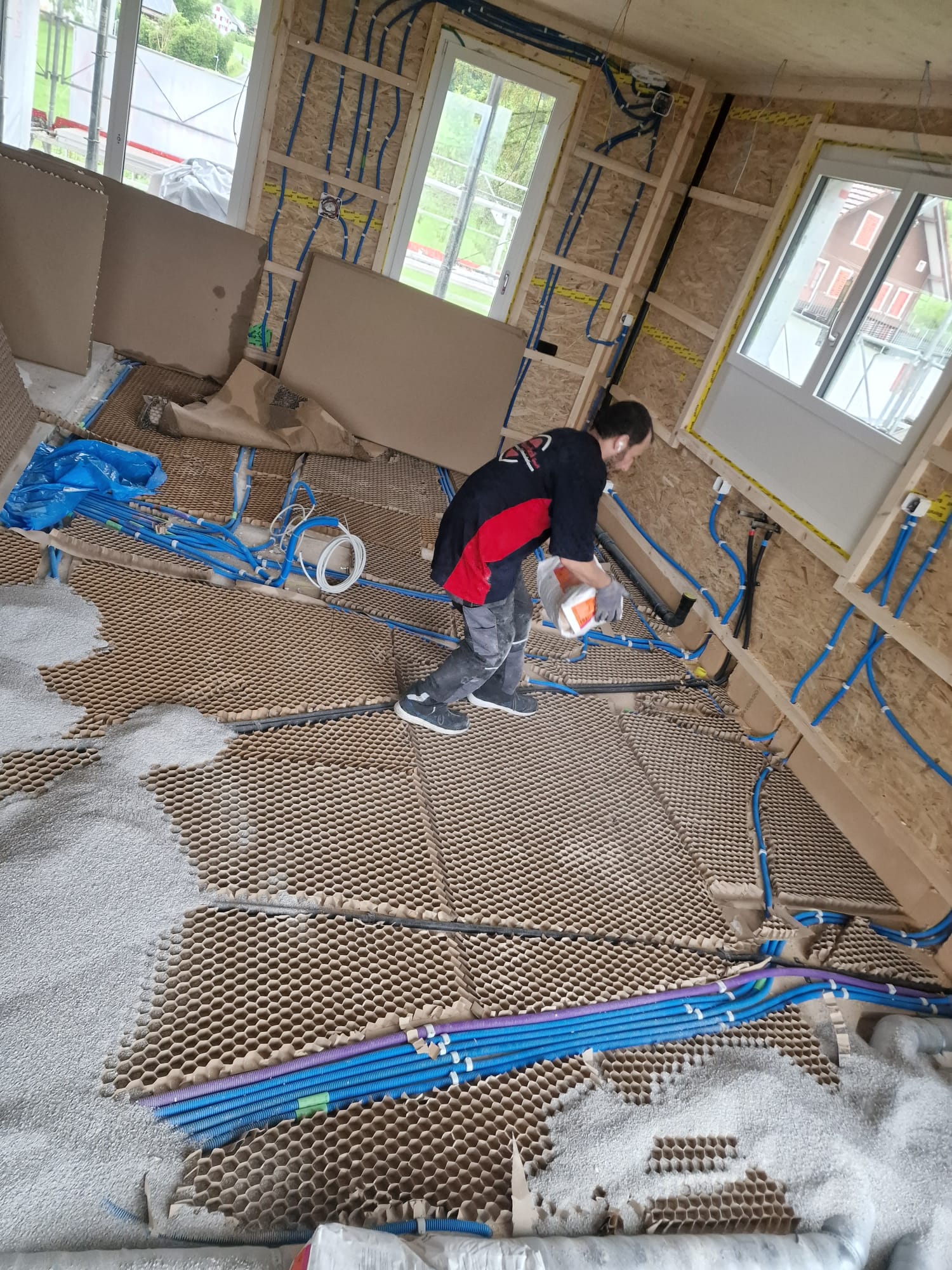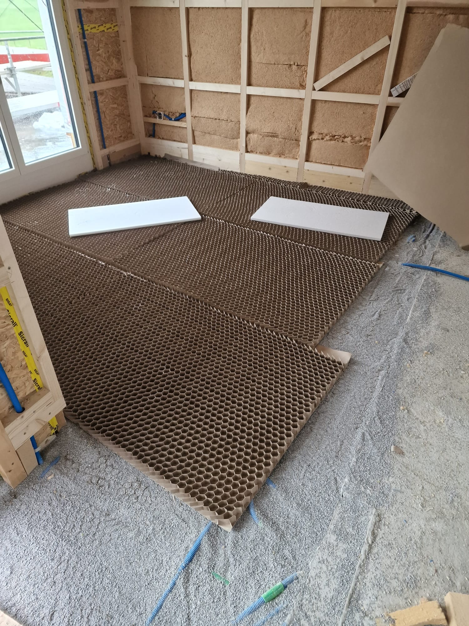Das Wabendämmsystem ermöglicht eine schnelle und saubere Verlegung der Fussbodenheizung. Durch die stabile Wabenstruktur entsteht eine gleichmässige Wärmeverteilung und eine sichere Rohrführung. Ideal für Neubauten und Renovationen mit klar definiertem Bodenaufbau.